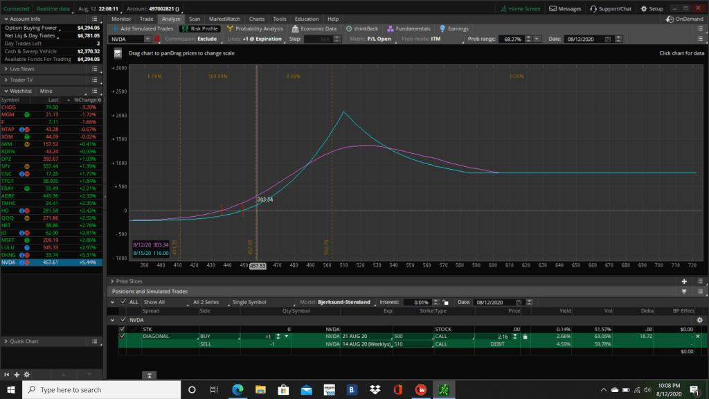 NVDA cost us $216, and we have more than a double on that currently. It would be very, very nice if this could go up another 5% or so in the next two days. The chart sets up well for it to have a chance.