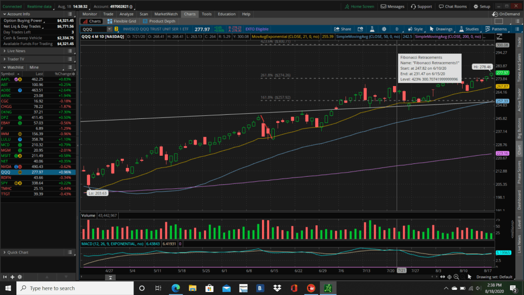 We sold out of our winning VIPS position into earnings. We sold out of a CGC option at about a $70 loss. That remains a mirage of an opportunity. We sold a portion of our winning positions in TMHC, NET, RDFN and the rest of our QQQs. Again, not because I’m not bullish in the Qs, but because there are better places to be than there. If you ask me, QQQ is headed for $300.