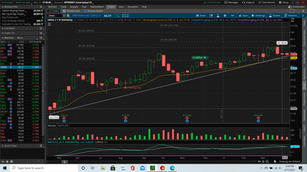 This is not a chart of a stock that’s going lower for any significant period of time in a growing economy where governments are literally giving people money and saying, “Hey, you should open up a Draftkings account and bet on sports!”